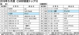 CM総合研究所(関根心太郎代表、東京都港区)は5月度のCM好感度ランキングをまとめた。総合ではKDDIの「au」が18カ月連続で1位となった。先月と同様にソフトバンクが2位。3位にはトヨタ自動車の「パッソ」がランクアップした。パッソは自動車業類としては2カ月連続の首位となっている。この調査は東京キー5局でオンエアされた全CMを採録・分析するととも…