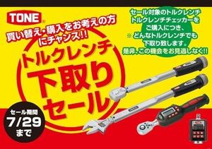TONEは7月29日まで「トルクレンチ下取りセール」を実施する。セール対象品となる同社製トルクレンチやトルクレンチチェッカーを購入すると、下取り価格の分だけ安く購入できる。他社製品や不動品も下取る。セール対象機種など詳しい内容については「ウェブサイトやチラシなどで確認してほしい」(担当者)としている。