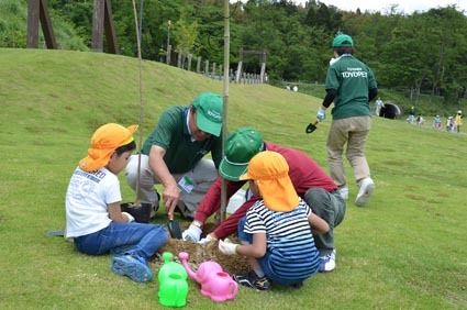 【富山】富山トヨペット(田形昌敏社長)が「第41回ふれあいグリーンキャンペーン」で富山市に寄贈したヤマザクラの苗木植樹会が1日、呉羽丘陵多目的広場で開催され、市内保育所の児童と同社社員、富山市の緑化推進担当者など総勢約40人が参加し、広場...