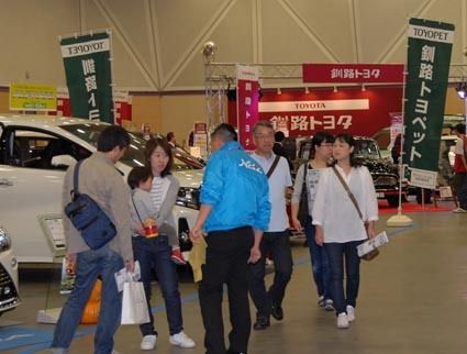 【釧路】釧路地区のトヨタ系ディーラー5社は先週末の2日間、合同で新車大商談会「トヨタドリームフェア2016」を釧路市観光国際交流センターで開催した。家族連れ客ら約2千人を動員し、会場内受注は65台となった。 会場に新車33台と試乗車27台...
