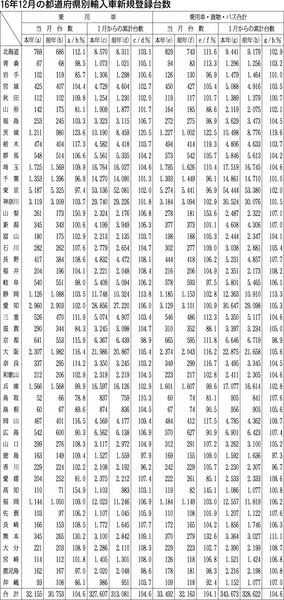 2016年の都道府県別輸入車新規登録台数は、京都、徳島、香川の3府県以外はすべてプラスとなった。2桁台の伸びを記録したのは茨城(前年比19・6%増)、静岡(同13・3%増)、熊本(同11・1%増)の3県。 また、同年の車名別輸入車新規登録...