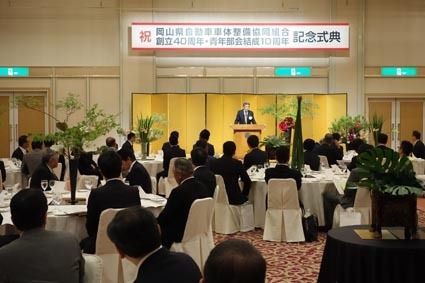 【岡山】岡山県自動車車体整備協同組合(村上純一理事長)は28日、岡山市中区の岡山国際ホテルで「創立40周年・青年部会結成10周年記念式典」を開催した。組合員のほか来賓など約100人が出席し、先人たちの功績を称えるとともに組合の節目を祝いあ...