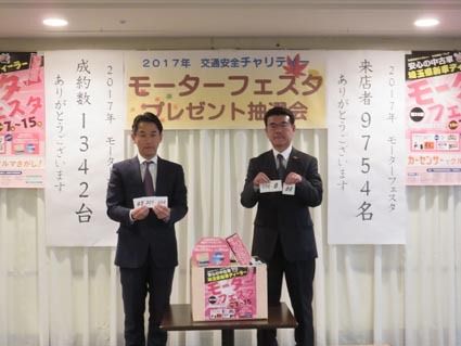 埼玉県自動車販売店協会・日本自動車販売協会連合会埼玉県支部(平沼一幸会長・支部長)は11月24日、10月に実施した「2017交通安全チャリティー埼玉県新車ディーラー中古車統一フェア モーターフェスタ」に伴う来場者プレゼントの抽選会を開催し...