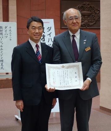 宮城ダイハツとダイハツ工業、宮城県にエンジン寄贈 高等技術専門校用教材