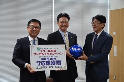 富山トヨタ、県内小学校にサッカーボール寄贈