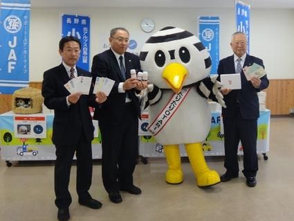 日本自動車連盟(JAF)長野支部(宇都宮進一支部長)はこのほど、北安曇野郡の小谷村役場で「おくに自慢navi小谷村名産品プレゼント抽選会」を実施した。今回、4万627通もの応募があり、松本久志村長や小谷キャラクター“たりたり”らが当選を決...