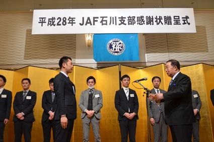 【金沢】日本自動車連盟(JAF)石川支部(要明英二支部長)はこのほど、JAFの会員拡大に功績を上げたディーラーやJAF取り扱い店、ディーラー社員らを表彰する平成28年「感謝の会」を、金沢市内のホテルで開催した。今年は16社・44人が受賞し...