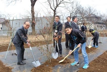 ナオイオート、坂東市の飯島小学校でブルーベリー苗木植樹