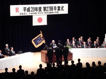 学校法人小倉学園東京自動車大学校(小倉基宏校長、葛飾区西亀有)は20日、かめありリリオホール(葛飾区亀有)で「第27回卒業式」を挙行した。会場には多数の保護者や来賓が訪れ、卒業生369人の門出を祝った。 1級整備士コース後期課程79人、同...