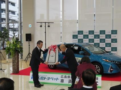 【広島】広島トヨペット(古谷英明社長)は20日、災害時に役立てて欲しいと広島県社会福祉協議会(山本一隆会長)に「プリウスPHV」1台を寄贈した。 クリップ広島(広島市中区)で寄贈式が行われ、古谷社長はプリウスPHVの高い給電能力を説明し「...