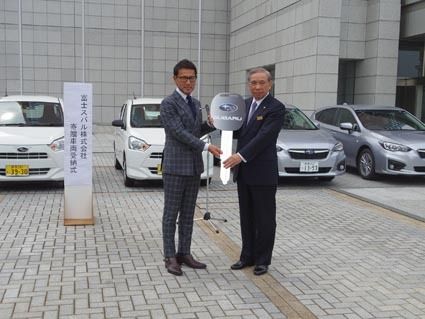 富士スバル(斎藤郁雄会長、宮田亘社長)はこのほど、群馬県に新車5台を寄贈。これに伴い群馬県庁の正面玄関前で寄贈車両受納式が行われた。式には富士スバルの斎藤会長と宮田社長が出席し、大澤正明群馬県知事から感謝状を授与された。 今回寄贈されたの...