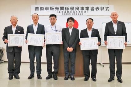 【大津】近畿運輸局滋賀運輸支局(矢川賢治支局長)は、守山市の滋賀県自販会館で「平成30年度(2018年度)自動車販売関係優良事業者支局長表彰式」を開いた。登録車の月末集中登録の排除に貢献した各社に、矢川支局長が表彰状を授与した。 今回の被...
