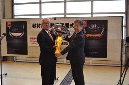 【山形】山形日産(小関眞一社長)と日産プリンス山形(同社長)は、山形県立山形職業能力専門校へ電気自動車(EV)「リーフ」の中古車1台を寄贈した。10日、教材用自動車贈呈式を開催し、小関眞一社長や佐藤・・校長、自動車科の訓練生41人が出席し...