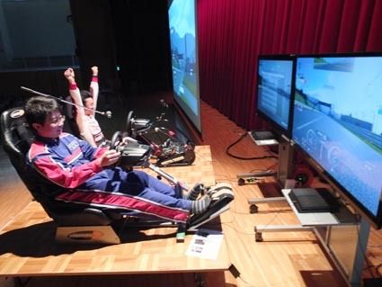 〈写真ニュース〉中嶋選手とレーシングゲーム対決