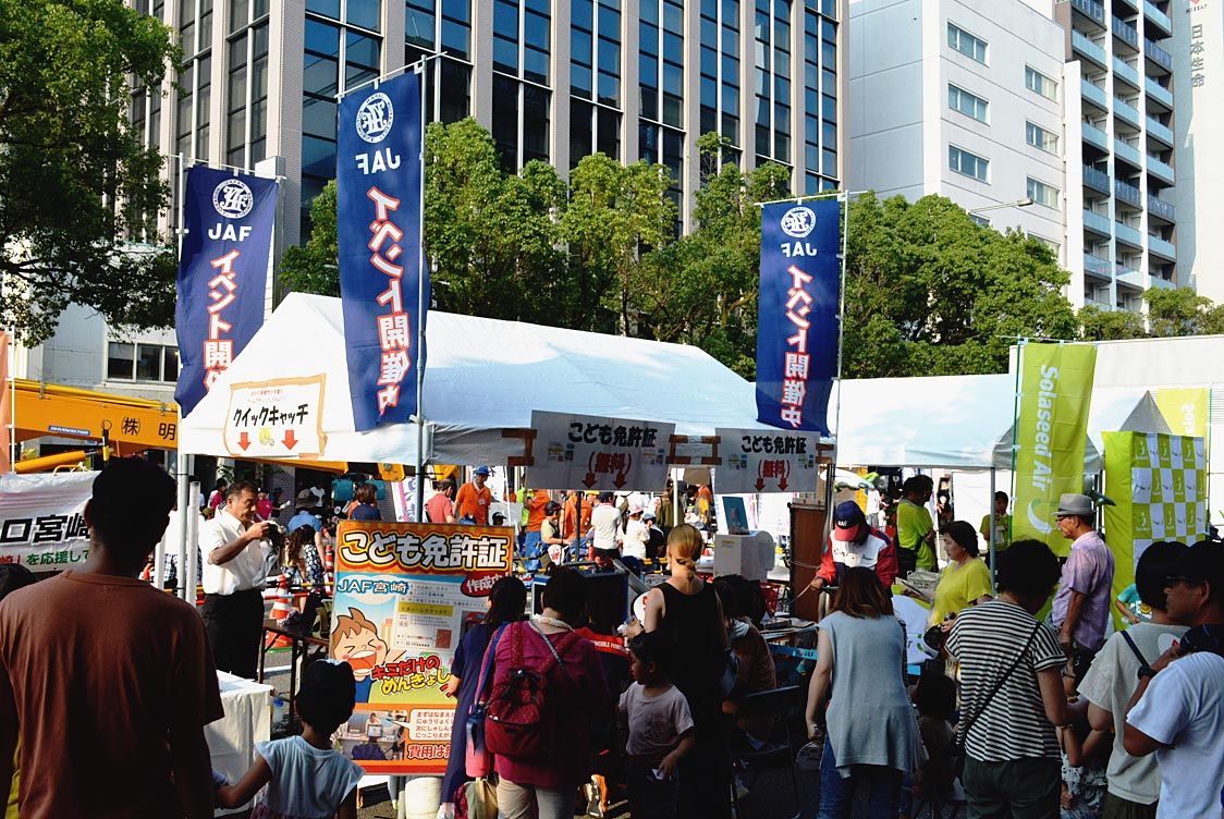 【宮崎】日本自動車連盟(JAF)宮崎支部(百野正剛支部長)はこのほど、2日間にわたり宮崎市高千穂通り周辺で開催された「まつり宮崎2019」に、JAFブースを出展した=写真。1日目にはJAFレッカー車の展示が、2日目には九州に2台しかない4...