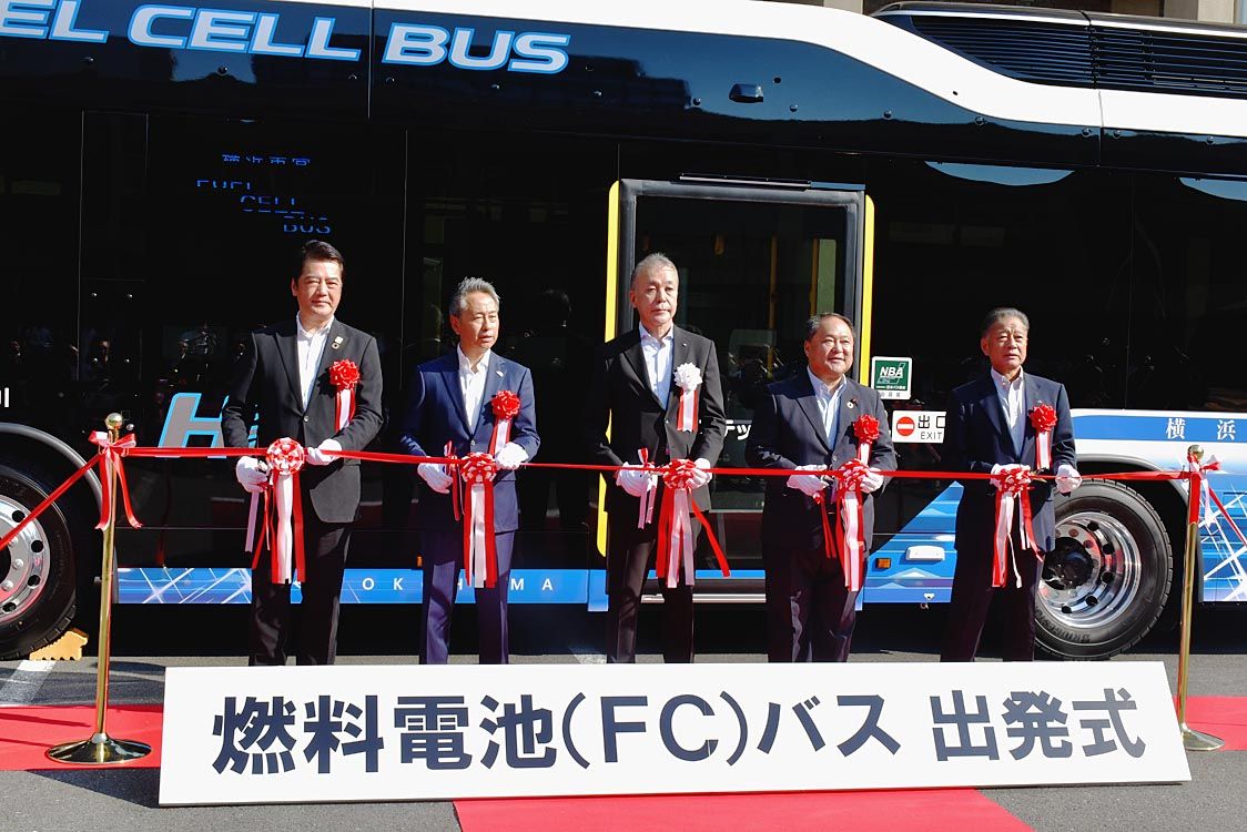 【横浜】横浜市は、市営バスでの営業運転を予定している燃料電池(FC)バスの出発式を横浜市役所で行った=写真。市では「ゼロカーボン横浜」を掲げ、地球温暖化対策とエネルギー施策を強化し、持続可能な大都市モデルの実現に向けた取り組みを進めている...