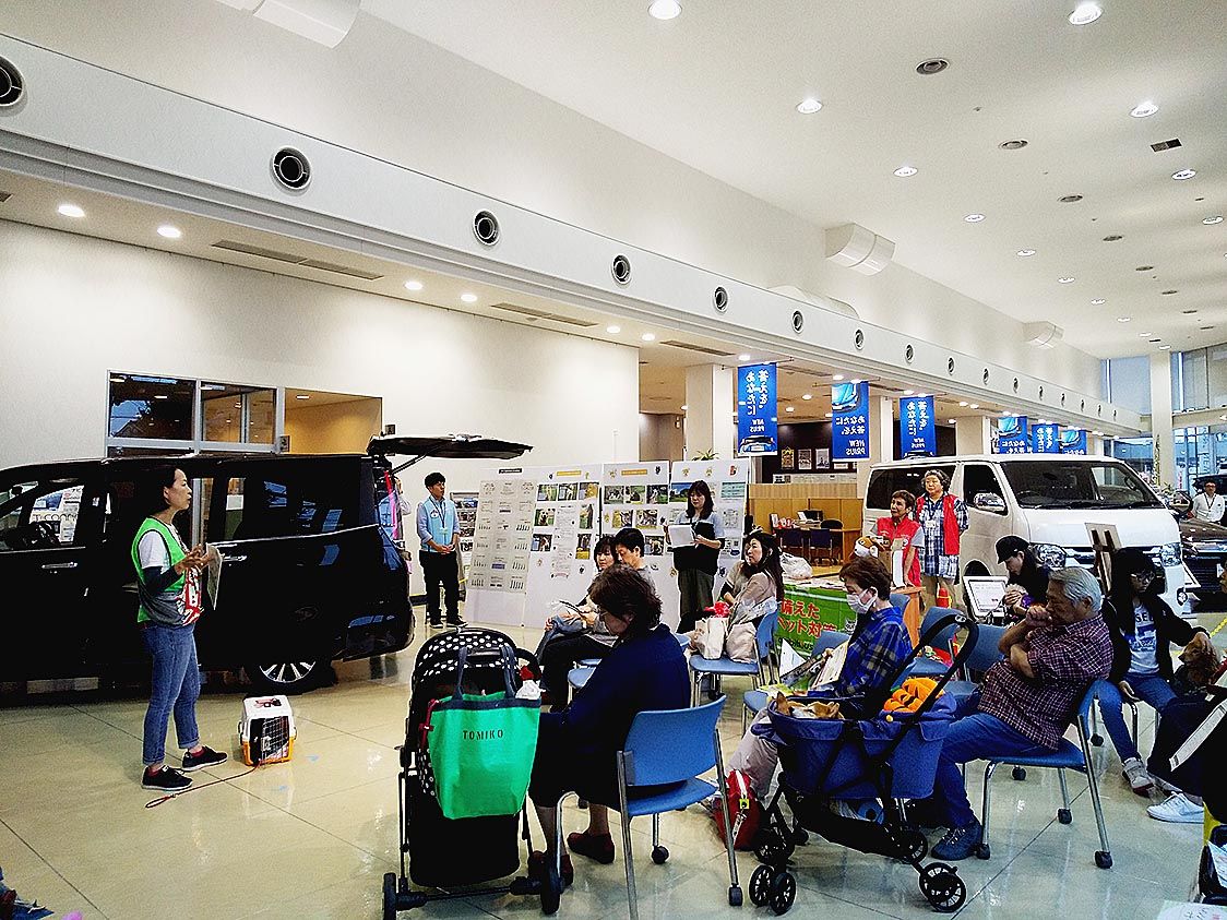 【京都】京都トヨペット(澤井孝之社長)は19日、同社七条本店(京都市下京区)で被災時にペットとの避難対応をテーマにした「ワンちゃんと防災 耳より講座」と題した講習会を開催した=写真。16人の愛犬家がペット13頭とともに参加した。東日本では...