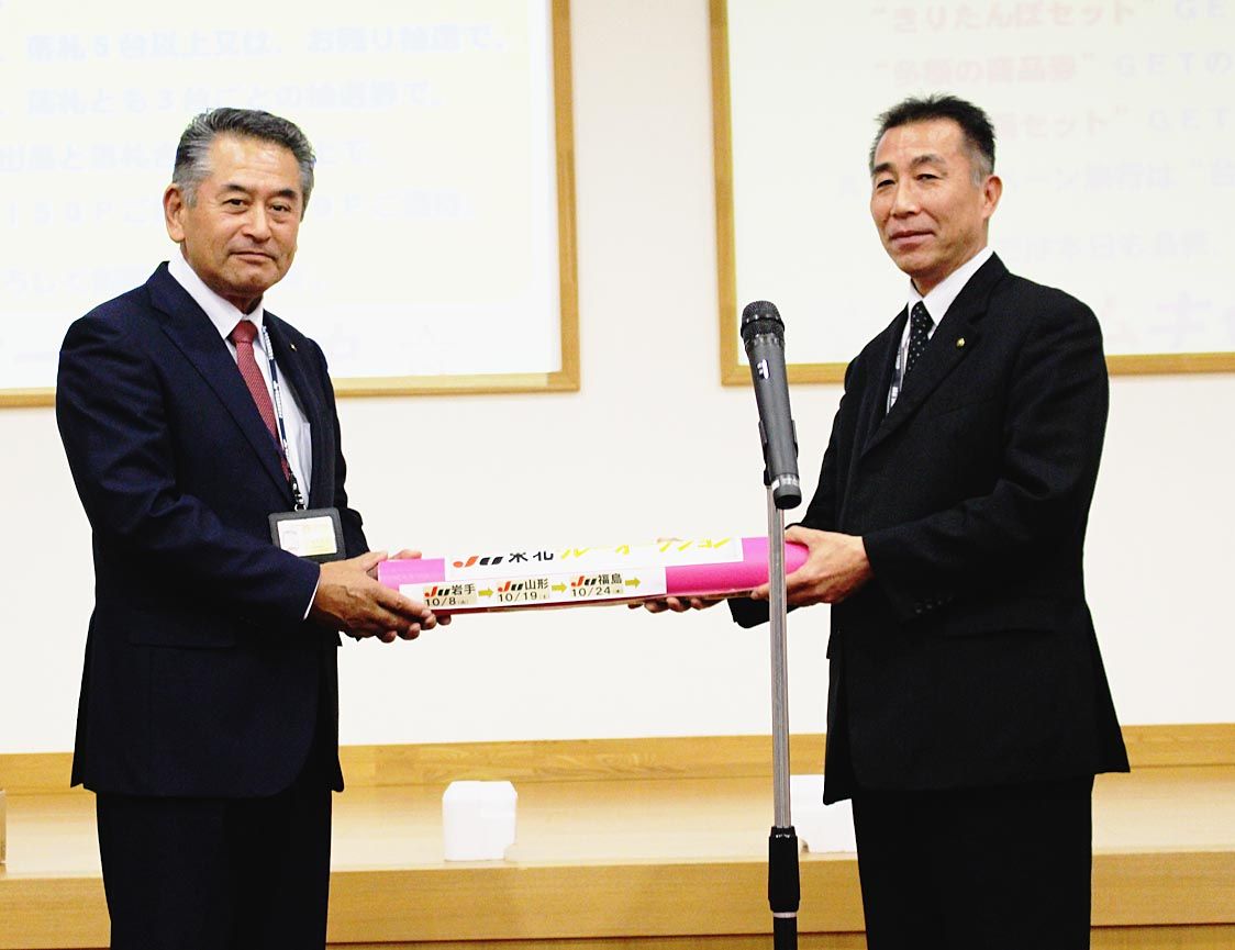 【秋田】秋田県中古自動車販売商工組合(藤原寛市理事長)は、秋田市の常設中古車オークション会場(AA)で「きりたんぽ・オールJU東北リレーAA」を開催した=写真。出品台数は457台で、目標達成率は107%だった。 競り前のセレモニーには藤原...