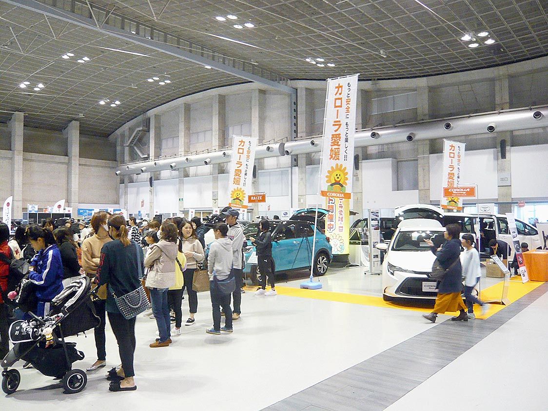 【松山】日本自動車販売協会連合会(自販連)愛媛県支部(岡豊支部長)は23、24日、松山市内のアイテムえひめで合同新車展示会「えひめカーフェスタ2019」を開催した=写真。県内新車ディーラー15社が参加し、2日間で延べ7480人の来場者を集...