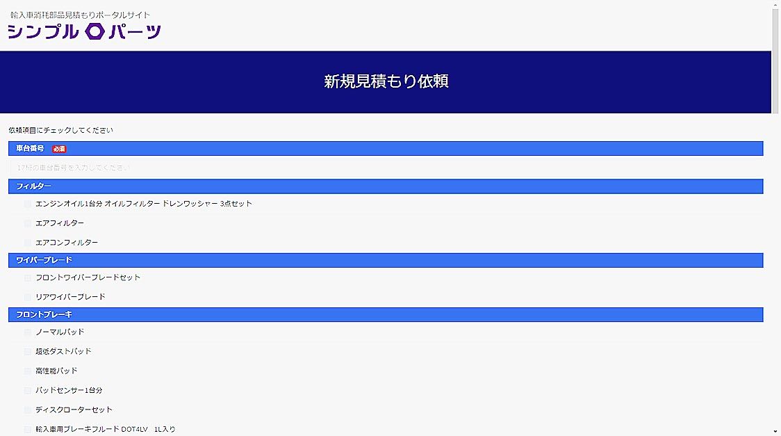 輸入車事業を展開するカレント自動車(江頭大介社長、横浜市青葉区)は、輸入車の補修部品専用のオンライン見積もり・発注サービス「シンプルパーツ」=写真は拡大画面=を開始する。同サービスは、輸入車のブレーキパッドを取り扱うアウトフレン(原敦哉社...