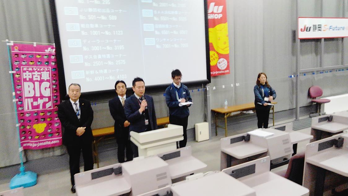 【静岡】静岡県中古自動車販売商工組合(JU静岡、小野田泰祐理事長)は2月18日、中古車オートオークション(AA)「青年部OB会ポス会員事務局担当AA」を開催した=写真。出品台数は、目標の1100台を上回る1160台を集荷。成約率は全体で6...