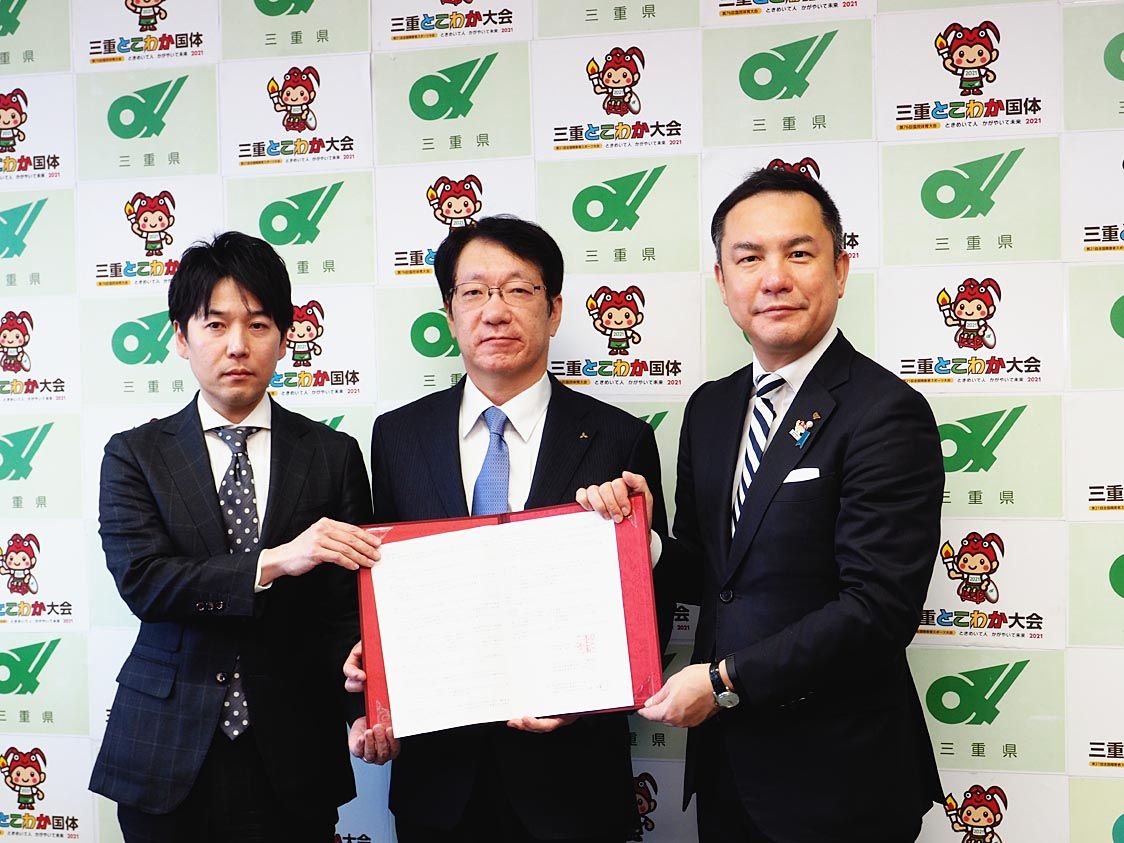 【津】三重県と三菱自動車、三重三菱(出口哲也社長)の三者は9日、「災害時における電動車両等の支援に関する協定」を締結した=写真。協定により災害が発生した時に三重三菱の電動車両を県に貸与するほか、防災訓練や防災の啓発、災害時における電動車両...