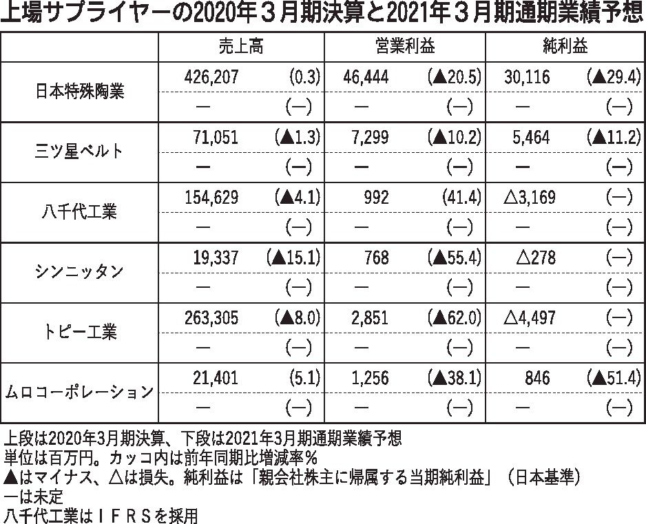 〈上場サプライヤーの2020年3月期決算と2021年3月期通期業績予想〉