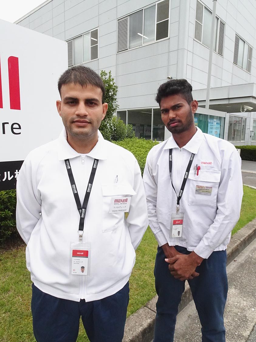 インド人技能実習生のヤデーブ・パルディープさん=写真左=とラビ・マリクマールさん。小野事業所での実習に加え、インドで2年に1回開催の「オートエキスポ」に実習の一環で説明員として参加した。「インドの自動車関係の来訪者からすごい技術だと反応さ...
