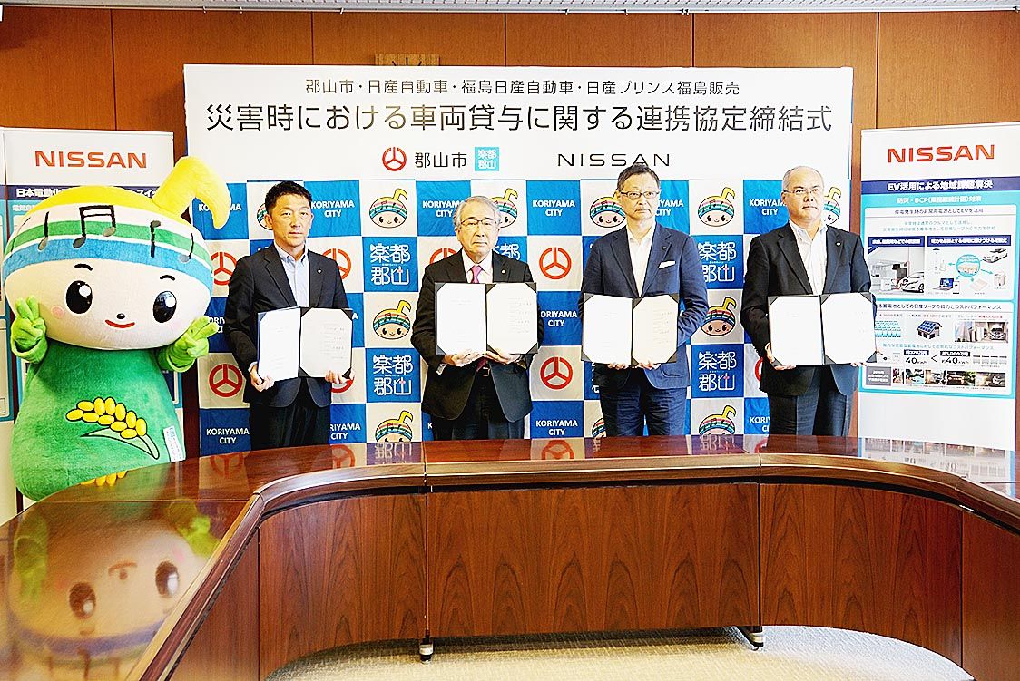 【郡山】日産自動車と福島日産(金子與志人社長)、日産プリンス福島(長島健博社長)郡山市(品川萬里市長)の4者は、「災害時における車両貸与に関する連携協定」を締結した。福島県の自治体で日産グループが連携協定を結ぶのは、今回が初めて。災害によ...