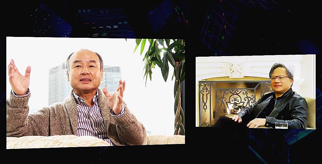 ソフトバンクグループが29日、オンラインで実施した法人向けイベント「ソフトバンクワールド2020」の基調講演で、同社の孫正義会長兼社長とNVIDIA(エヌビディア)のジェンスン・ファンCEO(最高経営責任者)がリモート対談し=写真、自動運...