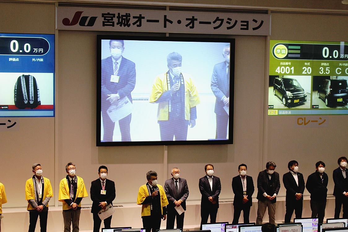 【仙台】JU宮城(鹿野利德理事長)は、大和町の常設中古車オークション(AA)会場で「青年部担当ビッグ記念AA」を開催した=写真。コロナ禍で活動が制限される中、青年部が担当するAAとしては2019年6月開催時に達成した出品台数2546台を2...