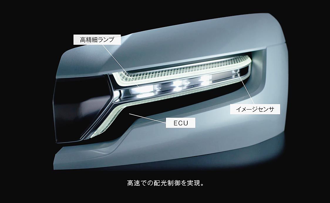 一般的にADBは、車載カメラで前方の車両位置を検出する。ただ、カメラは分割数が多く、情報伝達の遅れが生じる。次世代システムは、イメージセンサーをランプに内蔵することで視差補正を排除し、情報伝達の高速化を可能にする。