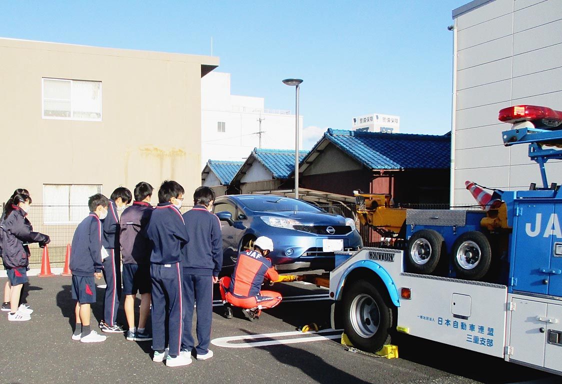 【津】日本自動車連盟(JAF)三重支部(川喜田久支部長)は、鎌田中学校(松阪市)で開催された職場体験学習「ミニわくわくワーク」に協力した=写真。職場体験学習は同校の2年生を対象に、働くことの意義などを学ぶ狙いで行っている。同支部は参加した...