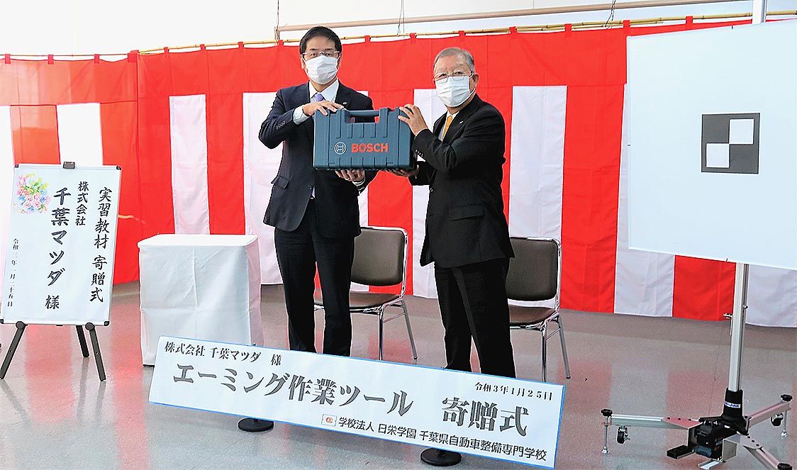 【千葉】千葉マツダ(大木康正社長)は、千葉県自動車整備専門学校(CATS―I、矢部明理事長・学校長)にエーミング(機能調整)を学ぶための作業ツールを教材として寄贈した=写真。大木社長が袖ケ浦市の同校を訪れ、矢部繁光事務局長に教材を手渡した...