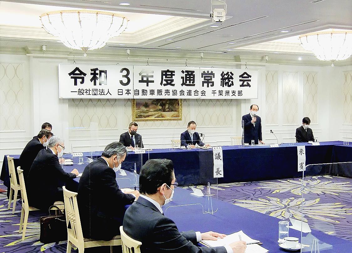 【千葉】日本自動車販売協会連合会(自販連)千葉県支部(出野祥平支部長)は、千葉市中央区のホテルで2021年度の通常総会を開いた=写真。前年度の事業報告と収支決算および新年度の事業計画案と収支予算案をそれぞれ承認した。 新型コロナウイルスの...
