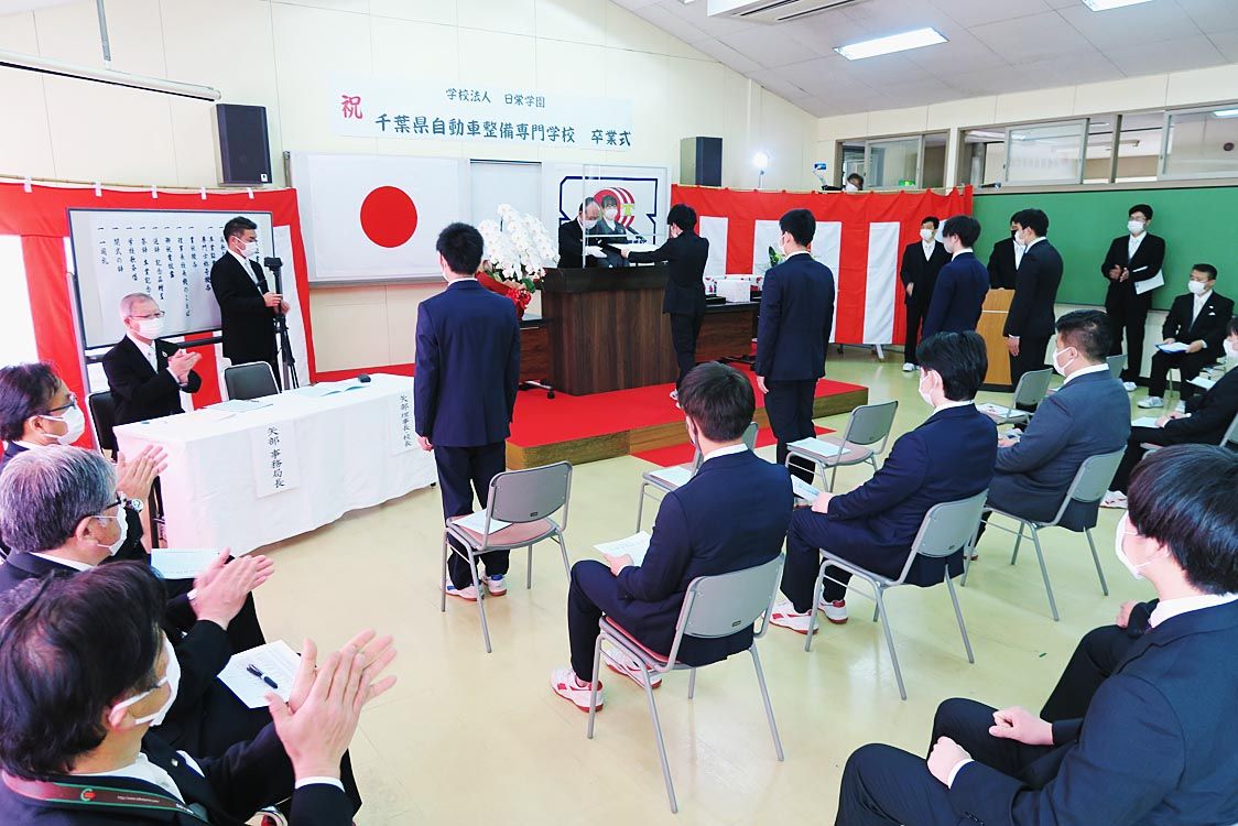 千葉県自動車整備専門学校(矢部明理事長・学校長)は、袖ケ浦市の校舎で現校名での最後の卒業式を開いた。同校は4月から日本自動車大学校(同理事長・学校長)のグループ校に移行する。現校名が記された最後の卒業証書を手に、33人の卒業生が学び舎を後...