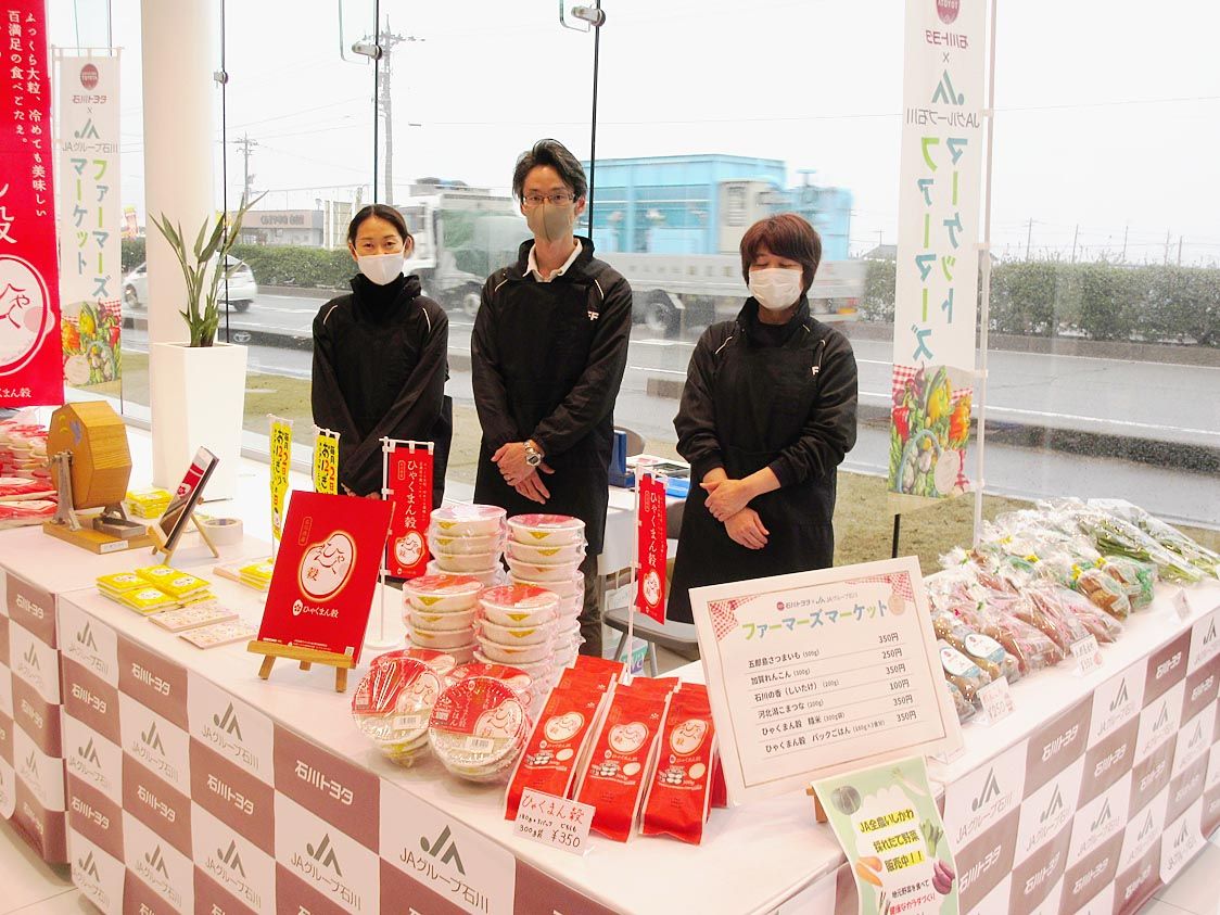 地域の新鮮野菜はディーラーの店頭でお求めください!―。石川トヨタ(架谷洋司社長)の白山店(竹中明店長、白山市)に6、7日、ファーマーズマーケットが出現した=写真。 イベントは、「地域活性化」というキーワードが合致したことからJAグループ石...
