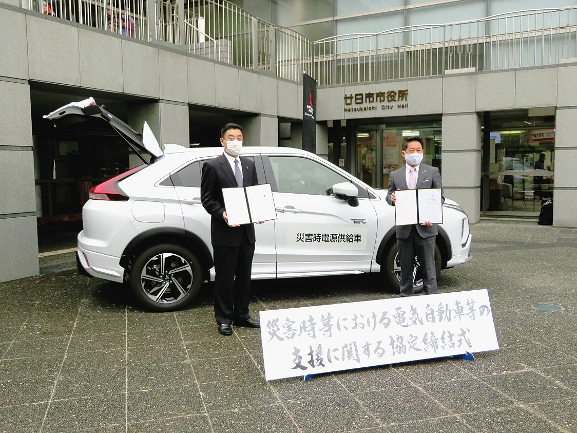 【広島】広島三菱(岡本精二社長)と三菱自動車は、廿日市市と「災害時等における電気自動車等の支援に関する協定」を締結した。同市役所で松本太郎市長と岡本社長が協定書をかわした。地震や水害など自然災害の発生による停電時に電気自動車(EV)やプラ...