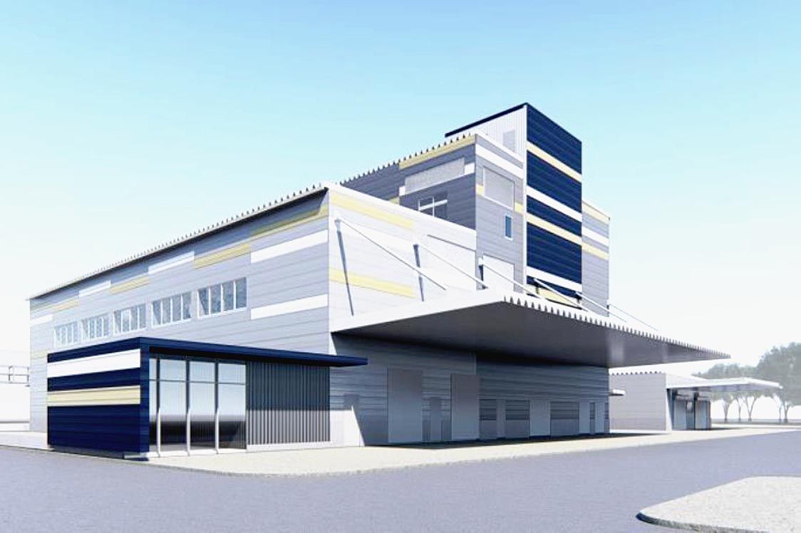 新工場は3階建ての工場棟と2階建ての業務棟、平屋建ての倉庫からなり、敷地面積は8万1600平方メートル。