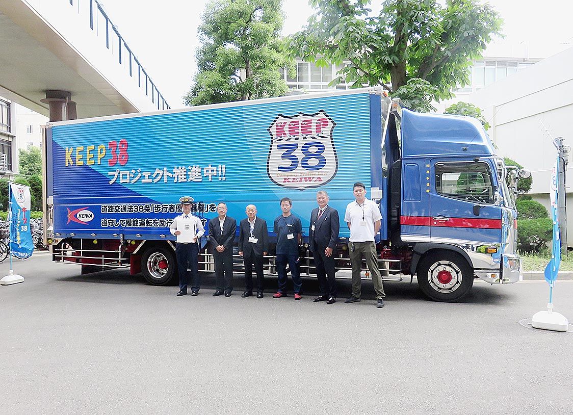 総合物流商社の啓和運輸(川島満社長、入間市)は、埼玉県警察本部が推進する歩行者保護対策「KEEP38プロジェクト」と連携し、すべての社有車約850台にプロジェクトのシンボルマークを表示している。同社は25日、同本部で大型トラックのウイング...