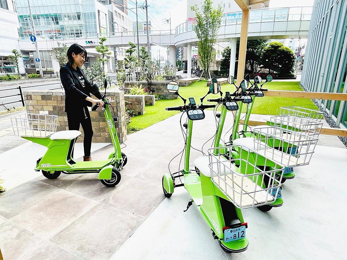 電動モビリティを開発・販売するフューチャー(井原慶子CEO、東京都港区)は、電動三輪バイクを活用したシェアリングサービスの実証実験を愛知県春日井市で7日から始める。JR勝川駅に自社開発した電動三輪バイクを20台配備し=写真、地域住民の足と...