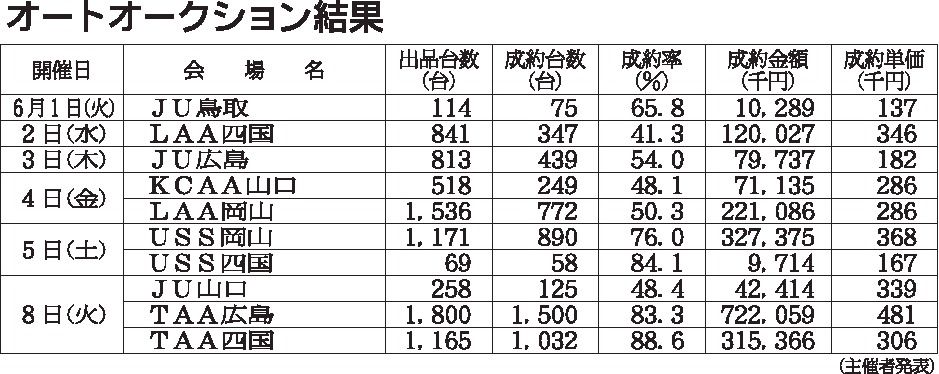 〈オートオークション結果〉中・四国地区 2025/11/5~11