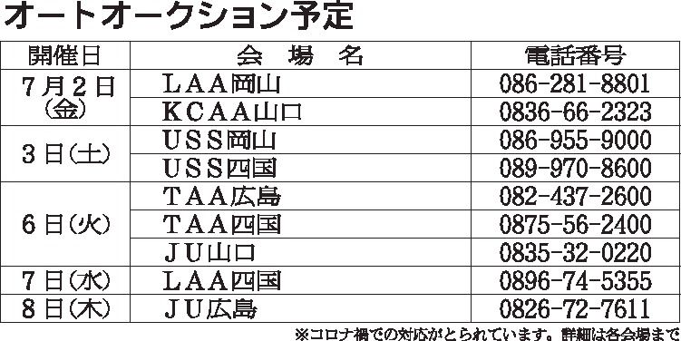 〈オートオークション結果〉中・四国地区 2025/12/3~9