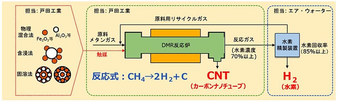 戸田工業とエア・ウォーターは7日、メタン直接改質法による鉄系触媒を用いた高効率水素製造システムの研究開発が新エネルギー・産業技術総合開発機構(NEDO)の委託事業に採択されたと発表した。今後2年間かけ、メタン原料から水素と副生成物として多...