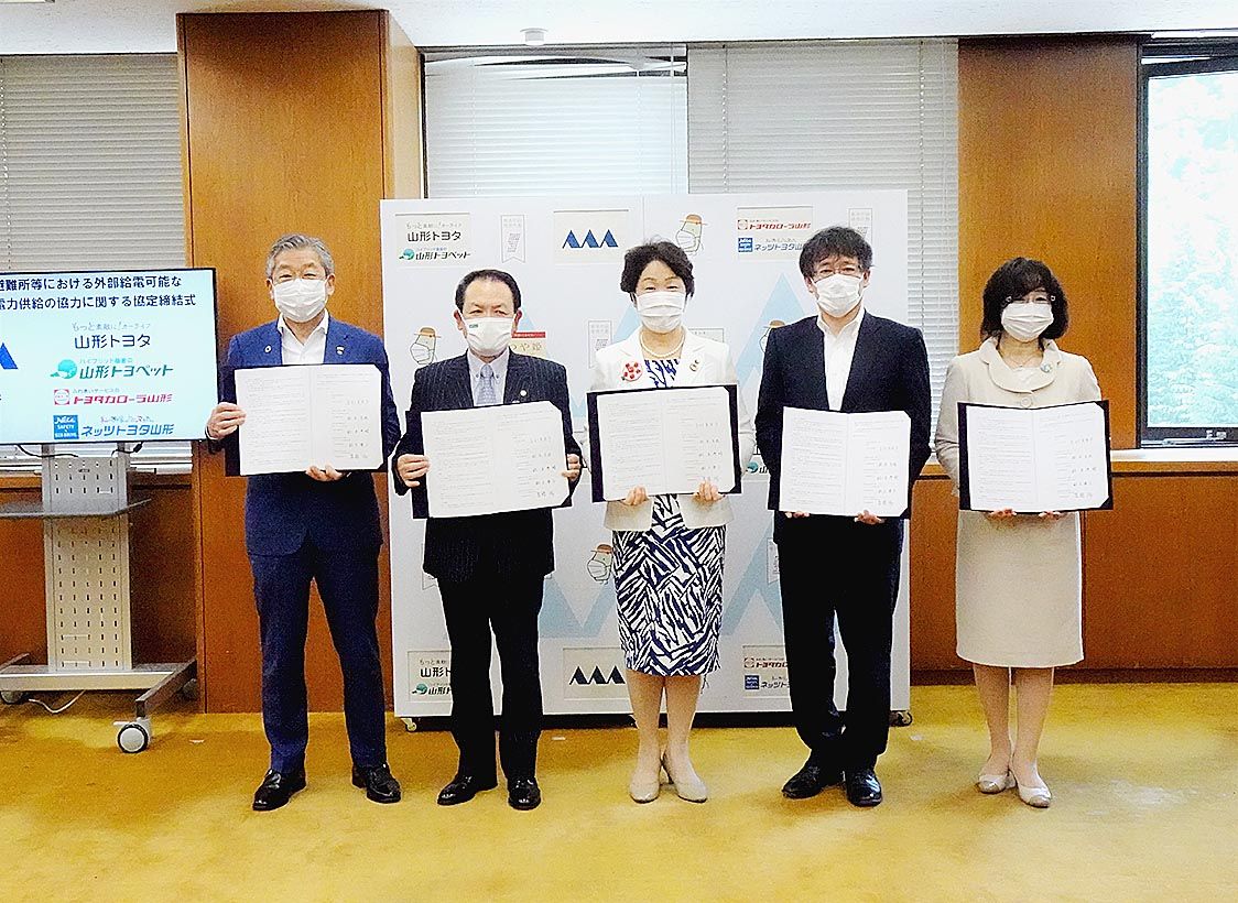 【山形】山形県トヨタ会は、山形県(吉村美栄子知事)と「災害時の避難所における外部給電可能な車両からの電力供給の協力に関する協定」を締結した。今回の災害時協力協定は、山形県内で災害が発生した場合に、避難所へトヨタ会4社が所有するプラグインハ...
