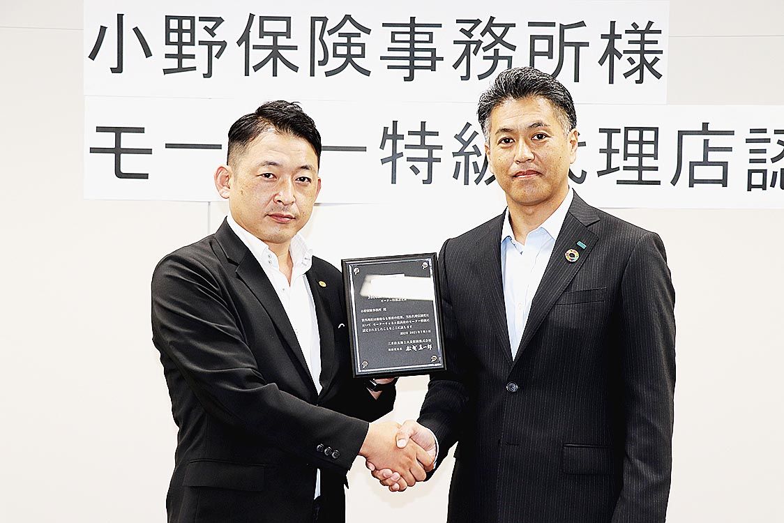 小野保険事務所(小野直樹代表、新潟市江南区)は、三井住友海上火災保険が定める保険代理店の最上位ランク「モーター特級代理店」の認定を受けた。認定式に出席した小野代表は「コロナ禍だからこそ業務品質と保険知識の向上に努めた」などと挨拶=写真左。...