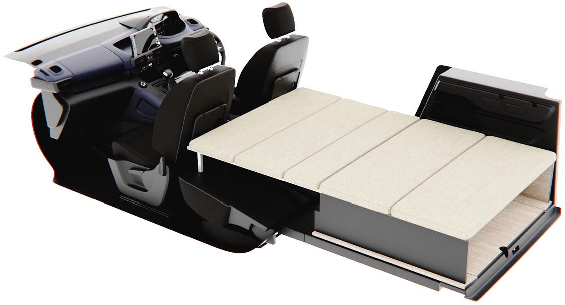 5分割式のマット構造で、内装を加工せずに取り付けができる。ベッド展開時は長さ1800ミリメートル、幅1200ミリメートルで、大人2人での車中泊に対応し、ベッド下は収納スペースとして活用できる。マット格納時は戸棚として使用できる。2列目シートに干渉しない設計で、走行時は最大5人乗車を可能とした。内外装色に合わせたモケット生地6色を展開する。