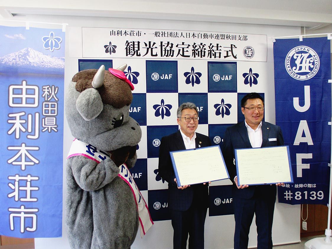 【秋田】日本自動車連盟(JAF)秋田支部(伊藤哲充支部長)は、由利本荘市(湊貴信市長)と「観光振興に関わる協定」を締結した。由利本荘市役所で締結式を行い、伊藤支部長と湊市長が協定書に署名を交わした。 同支部が秋田県内の自治体と同協定を締結...