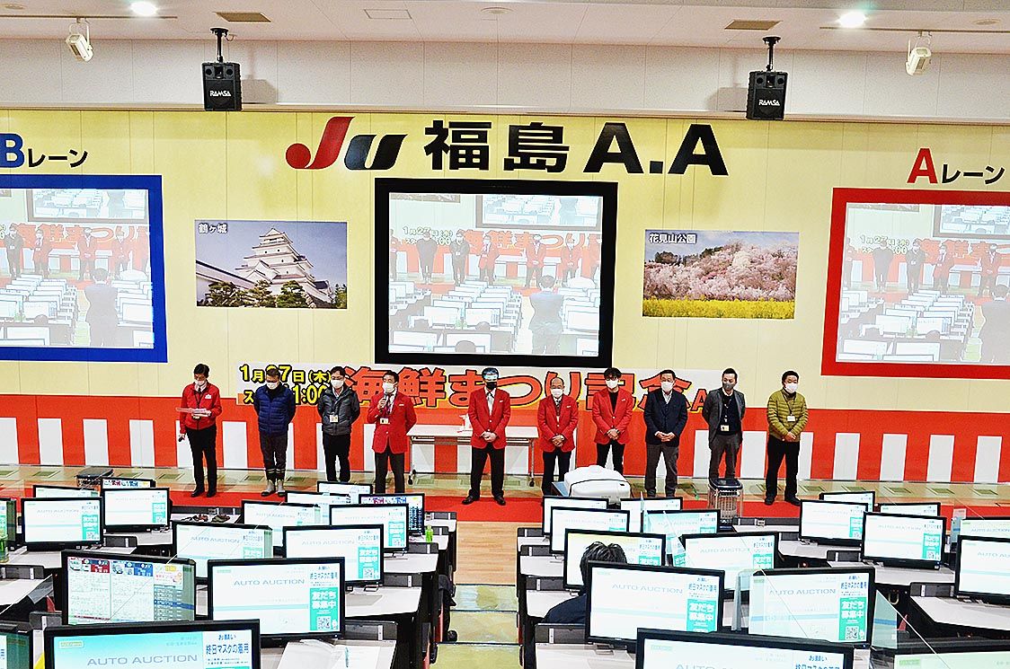 【福島】JU福島(橋本一男理事長)は、福島市内の常設中古車オークション(AA)会場で「初荷・支部合同AA」を開催した=写真。同会場は、年末年始の大雪で一時は開催が危ぶまれたが、職員の懸命な除雪で開催にこぎつけた。 セレモニーで橋本理事長は...