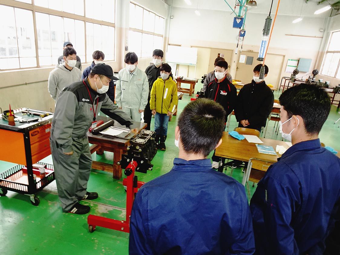 【盛岡】自動車整備士を養成する岩手県立千厩高等技術専門校(金崎毅校長)は、一関市千厩町の同校で「1日体験入校」を開催した=写真。職業選択の一つとして「整備士に関心を持ってもらう貴重な体験の場」と位置付け、夏と冬の年2回開催している。岩手県...